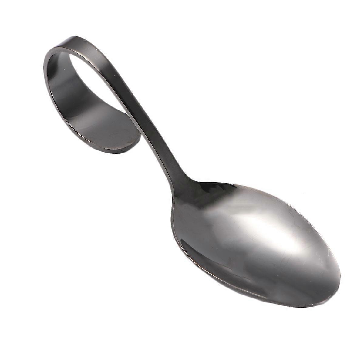 Stainless Steel Spoon Curved Handle Spoon for Hotel Buffet Kitchen Black