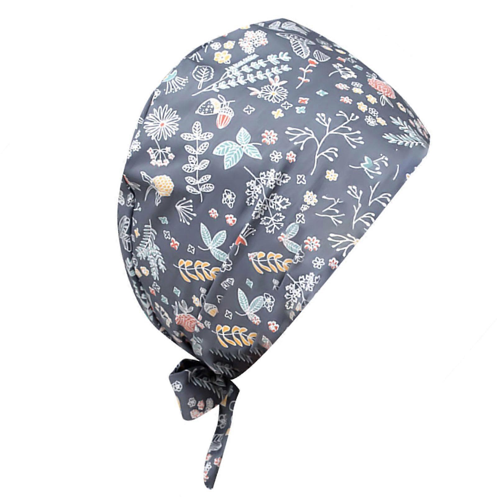 Adjustable Unisex Scrub Cap Flower Printed Tie Hat for Comfortable Wearing
