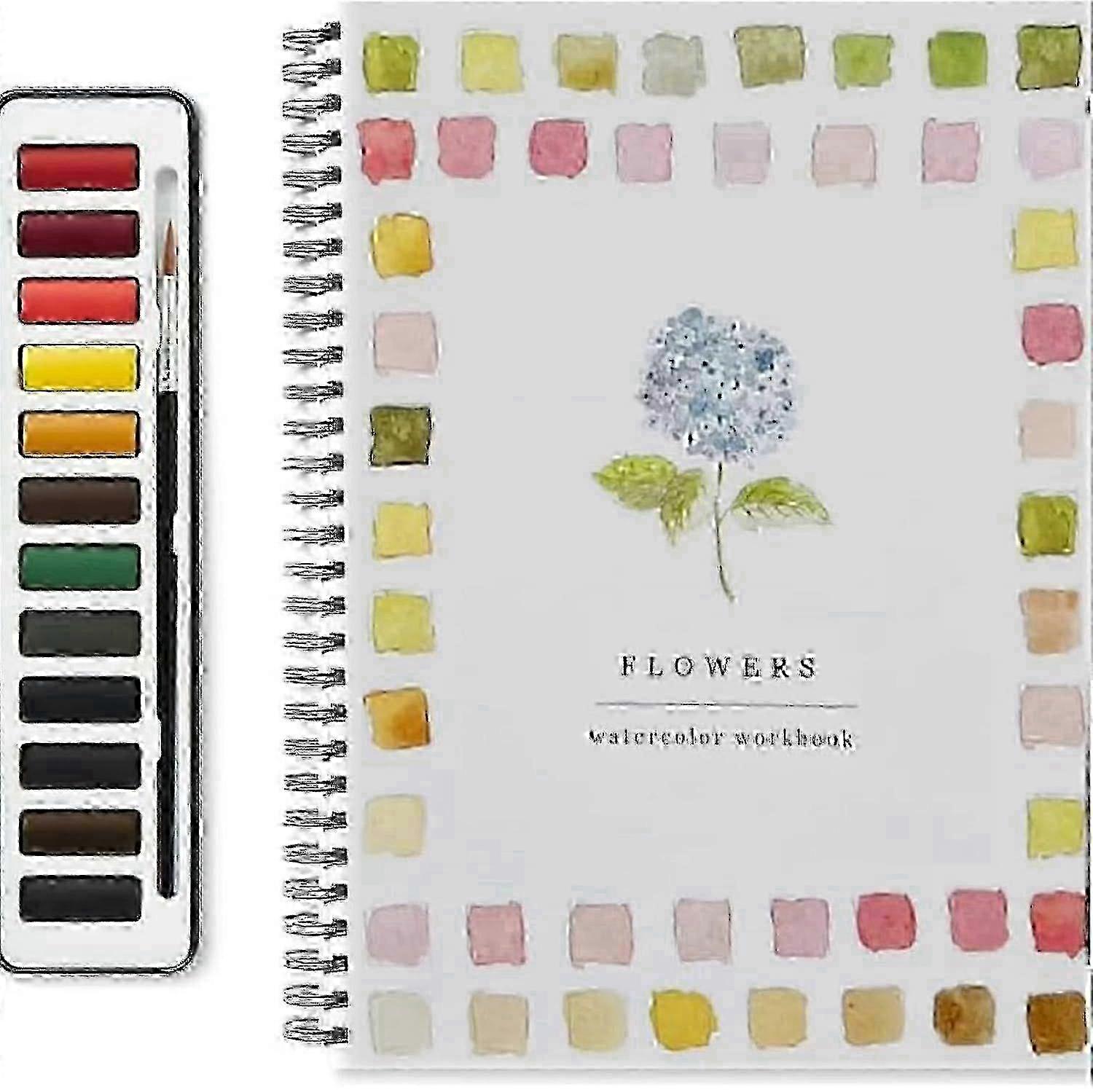 Watercolor Workbook for Beginners - Includes 12 Colors Paint Set & Paint Brush - Yvan