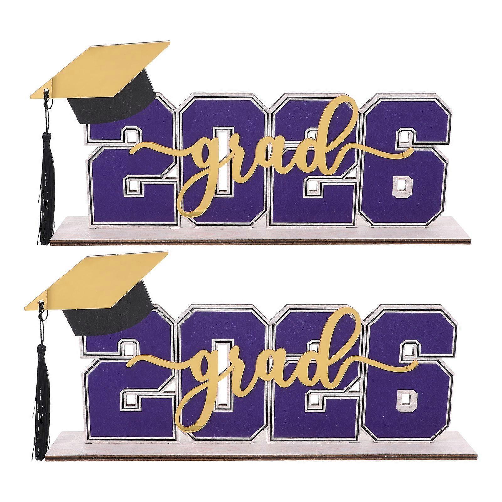 2pcs Graduation Party Decorations: Graduation Desktop Decorations - 2026 Wooden Grad Table Centerpieces with Tassel for Home Celebration