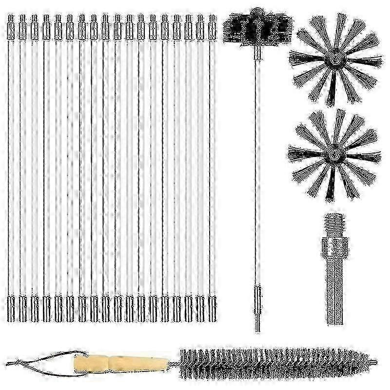 22 Pcs Chimney & Duct Vent Cleaning Brush Set with 18 Nylon Rods - Perfect for Fireplace and Dryer Vent Cleaning
