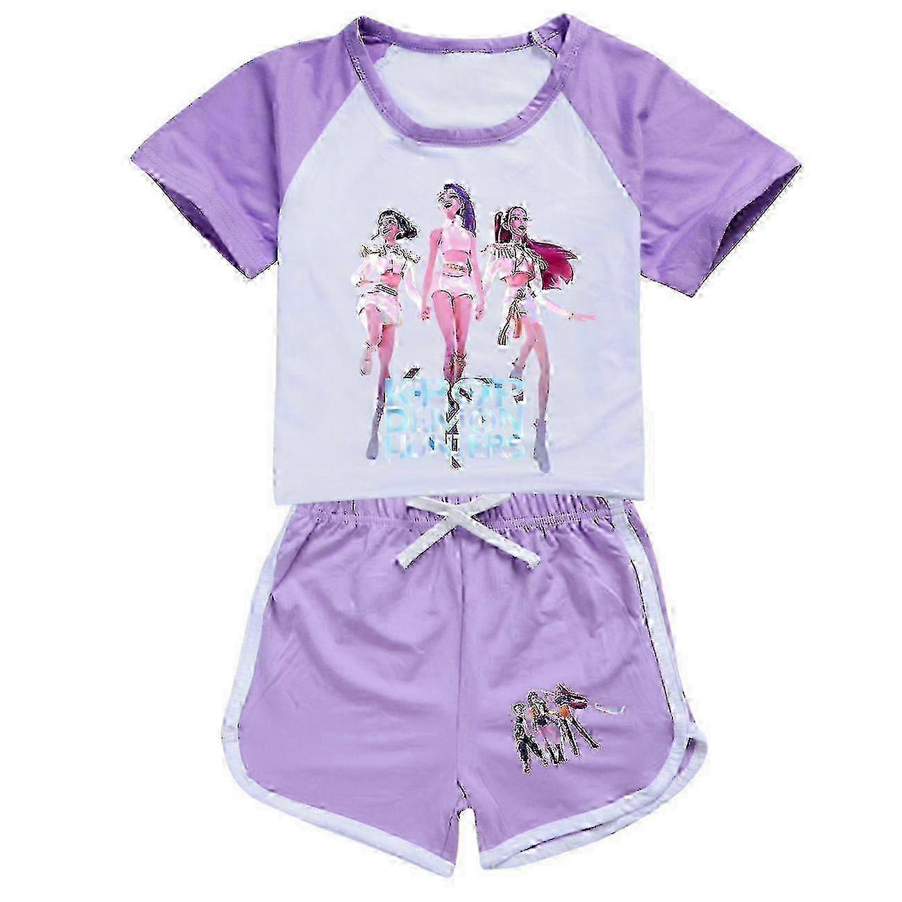 Girls K-Pop Demon Hunters Inspired Short Sleeve T-Shirt & Shorts Pajama Set for Kids - Top & Bottom _01 _b