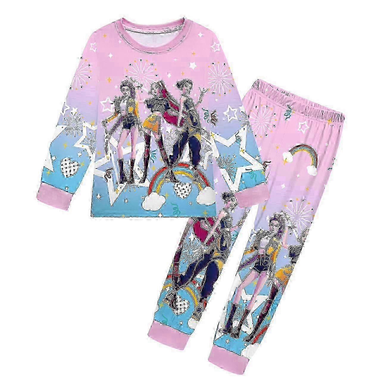 Long-Sleeved T-Shirt & Pants Set for Girls Kids - K-Pop Demon Hunters Inspired Costume Outfit