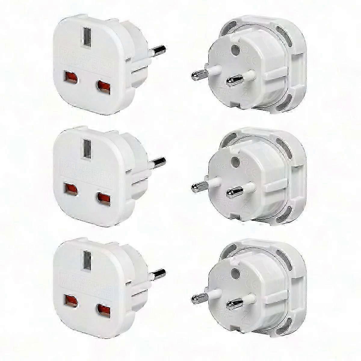 3-Pack UK to EU Travel Adapter, Type C Plug for Europe, Egypt, Turkey - White SH