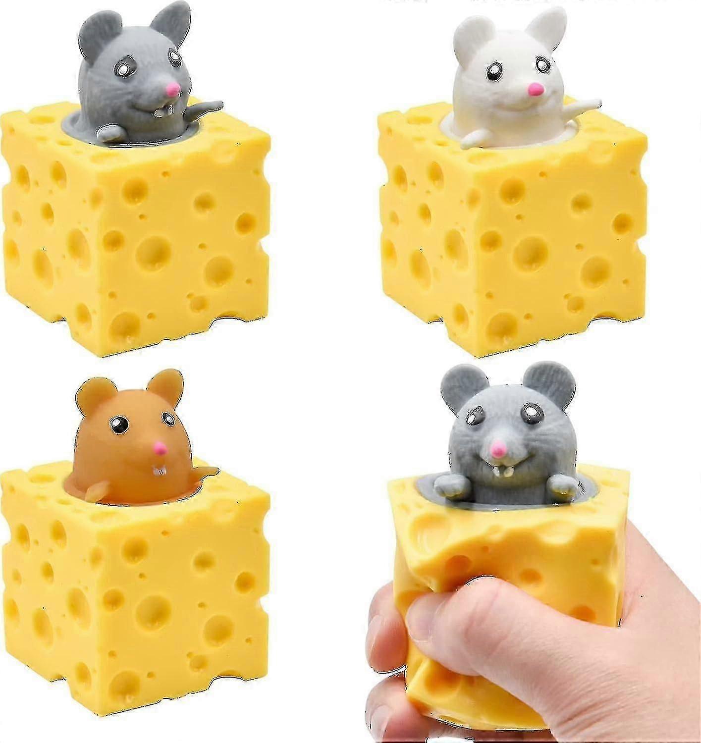 3 Pack Stress Relief Toys: Cheese Mouse Cup, Stretchy Sensory Toys for Adults & Kids