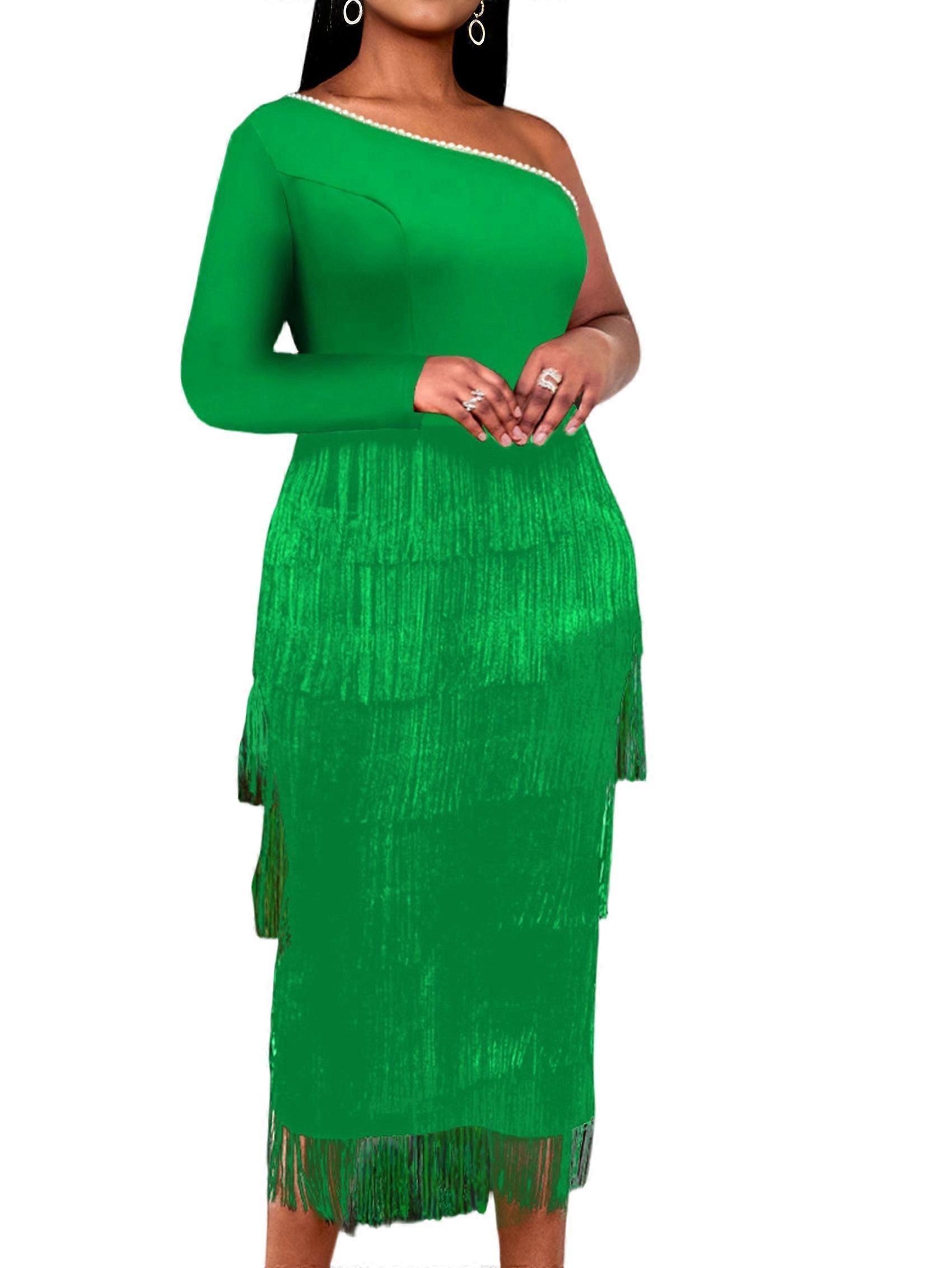 Women'S Plus Size 1920s Flapper Dress Sleeveless Deep V Neck Fringe All over Tassel Tiered Prom Party Midi Dress Green S