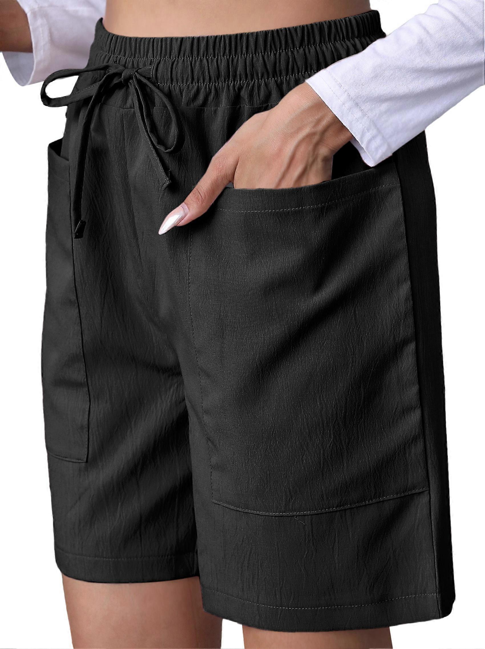 Omen Casual Shorts Drawstring Comfy Elastic Waist Shorts Summer Pull on Short with Pockets Black M