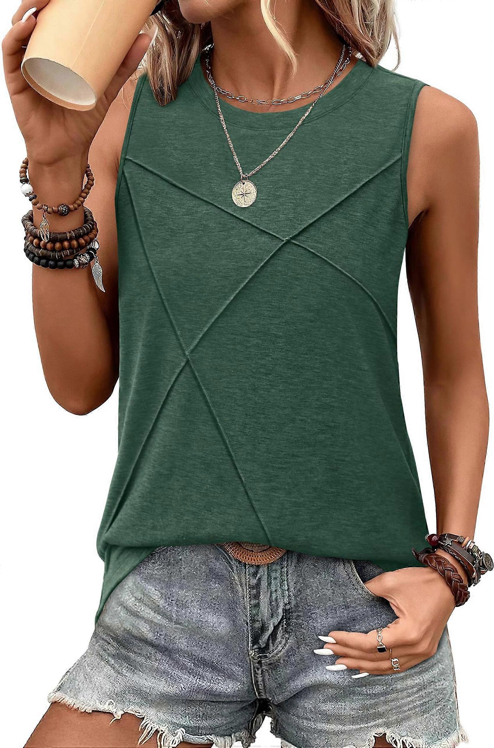 Women Loose Fit Crew Neck Casual Sleeveless Tank Tops Green XL