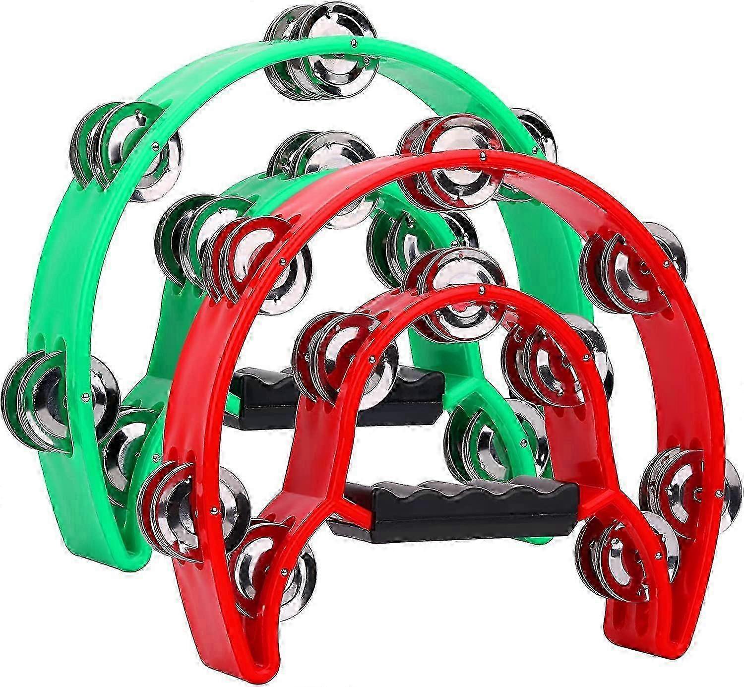 Handheld Tambourines, Set of 2 with 20 Metal Jingles, Half Moon Ergonomic Grip Percussion Instrument