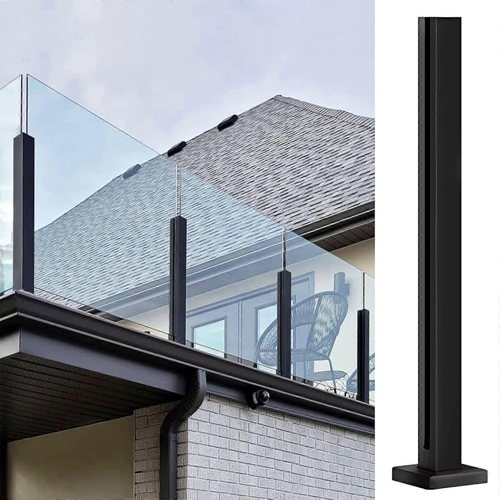 75cm Black Square Fence End Post for Balcony Railing and Staircase, Easy Install Secure Terminal