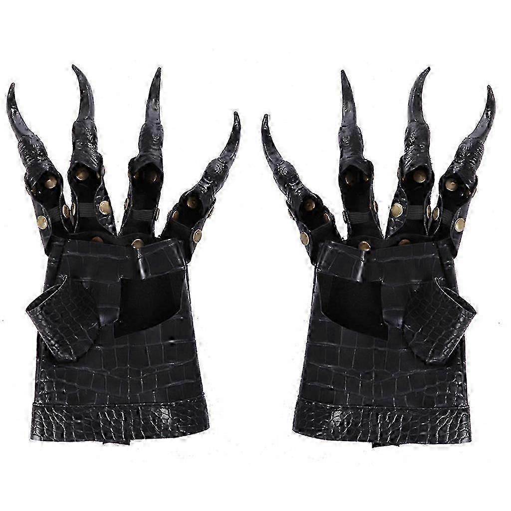Dragon Claw Gloves, Unisex Gothic Punk Halloween Metal Studded Long Finger Nail Faux Leather Mittens Cosplay Props