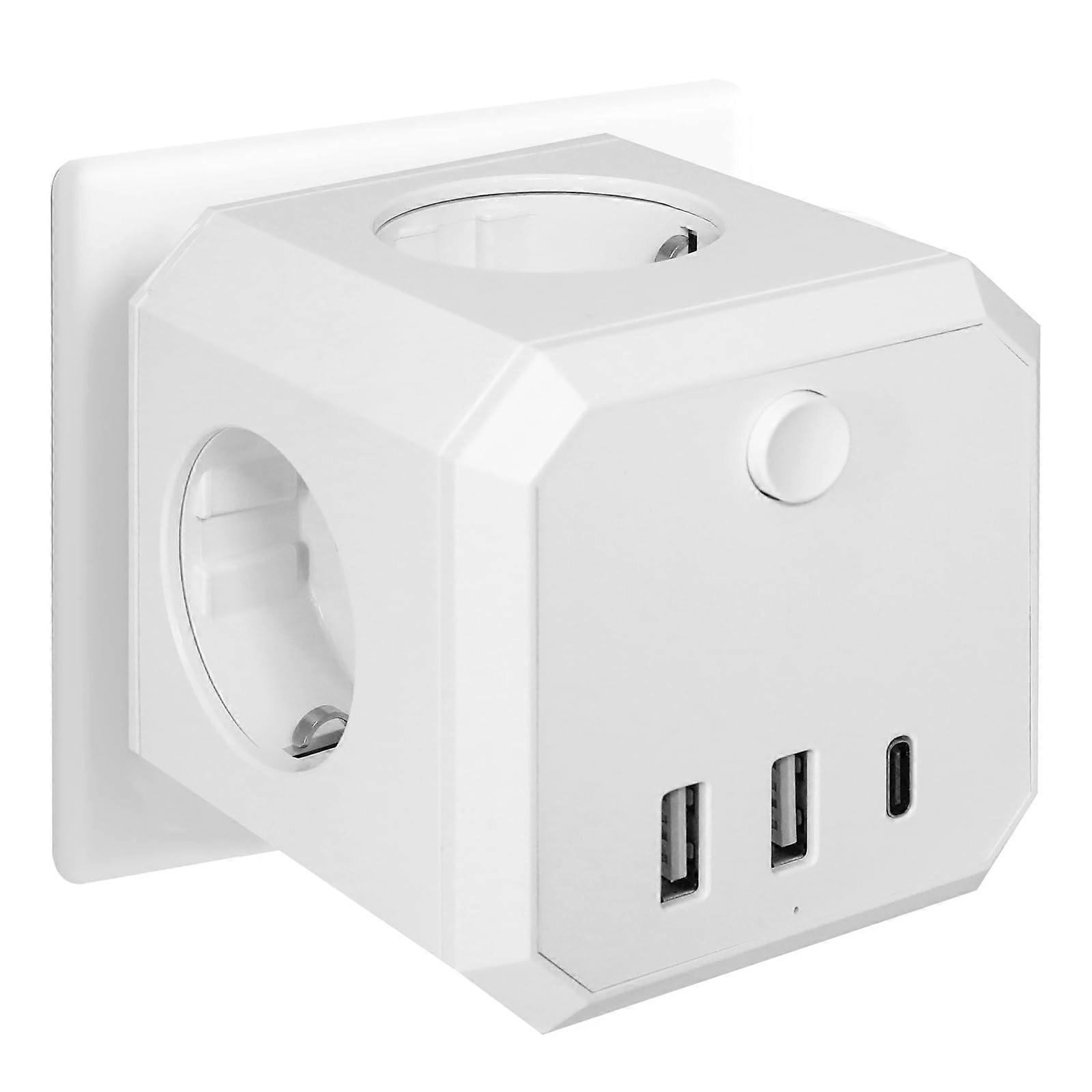 7in1 Power Strip Cube with 4 AC Outlets, USBC and USBA Ports, Switch Control for Home Office Travel