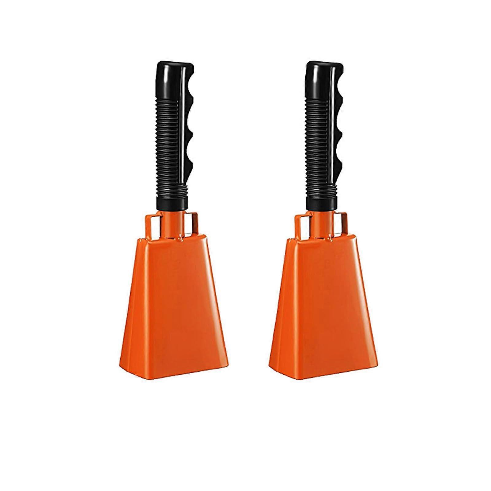 Orange Handheld Cowbell 2Pack with Ergonomic Handle for Sporting Events and Graduation