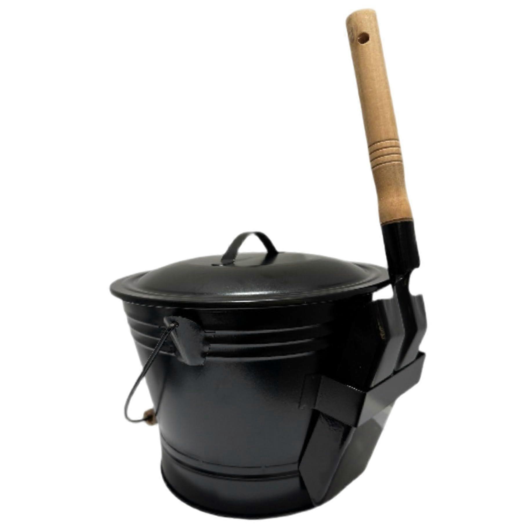 2PCS Fireplace Ash Bucket with Lid and Shovel, Heavy Duty FireResistant Iron for Stoves and Pits