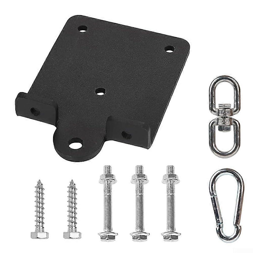 HeavyDuty Steel Construction: Crafted from robust steel with a black coating, this ceiling mount hook offers long lasting performance and resists erosion, providing a secure hold for your heavy punching bag with 5 bolt points for reliable installation Kit For Easy Setup: This package includes 1x bag hanger, 1x carabiner, 1x rotating link buckle, 2x lag bolts, 3x hex bolts and 3x hex nuts, making installation quick and convenient for immediate use in your home gym 360Degree Rotation Mechanism: Featuring a rotating link buckle, this black ceiling mount hook allows your boxing or Taekwondo bag to swing while avoiding injury during intense training SpaceSaving Wall Mount Design: Maximize your training area with this efficient ceiling mount solution that utilizes vertical space, suitable for hanging various swing types including porch swings and playground equipment Use scenarios Home gym boxing or Taekwondo training: Hang a heavy bag from the ceiling mount to enable fullrange punching and kicking drills with a secure, stable setup Small or multiuse training room: up floor space by overhead mounting the bag or other swings, allowing you to perform floor exercises and bag work in the same area Outdoor porch or backyard setup: Install for porch swings or playground equipment, leveraging the vertical space to keep ground area clear while maintaining sturdy support