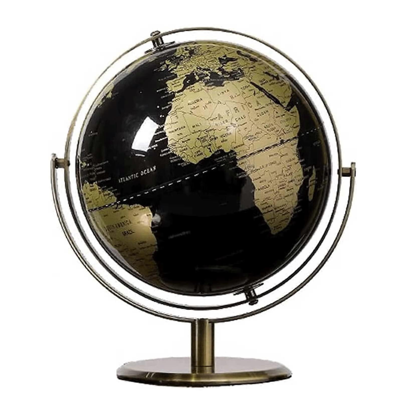 Rotating Black Ocean World Globe with Metal Stand, HD Map, 360° Spin for Office and School