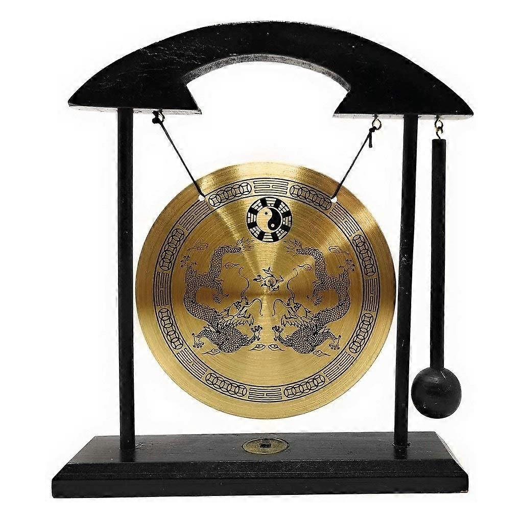 Zen Brass Desktop Gong with Pendulum for Feng Shui Home Office Decor and Clear Resonant Chime