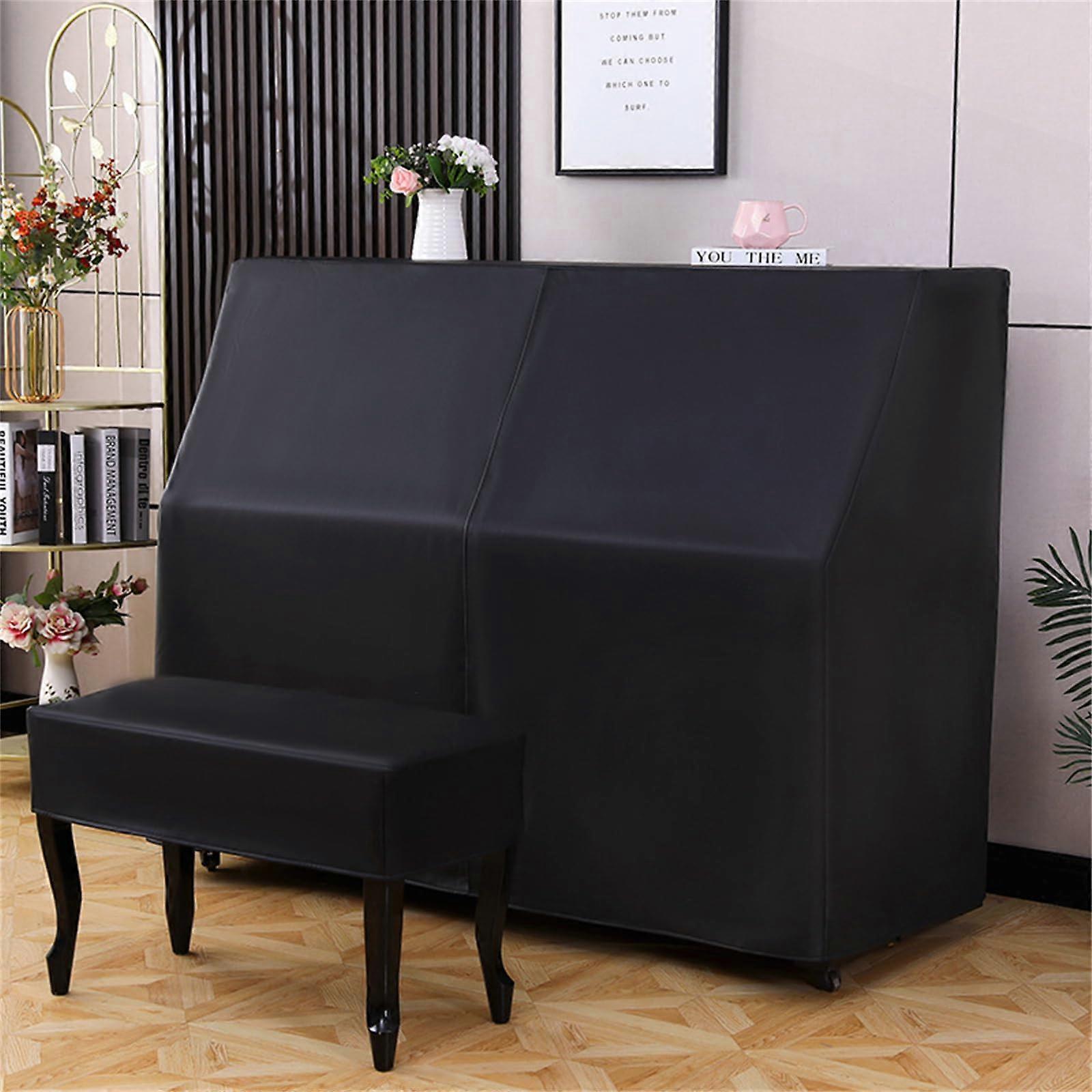 Leather Upright Piano Cover with Stool, Waterproof Dustproof Sunlight Protection, Universal Fit Black