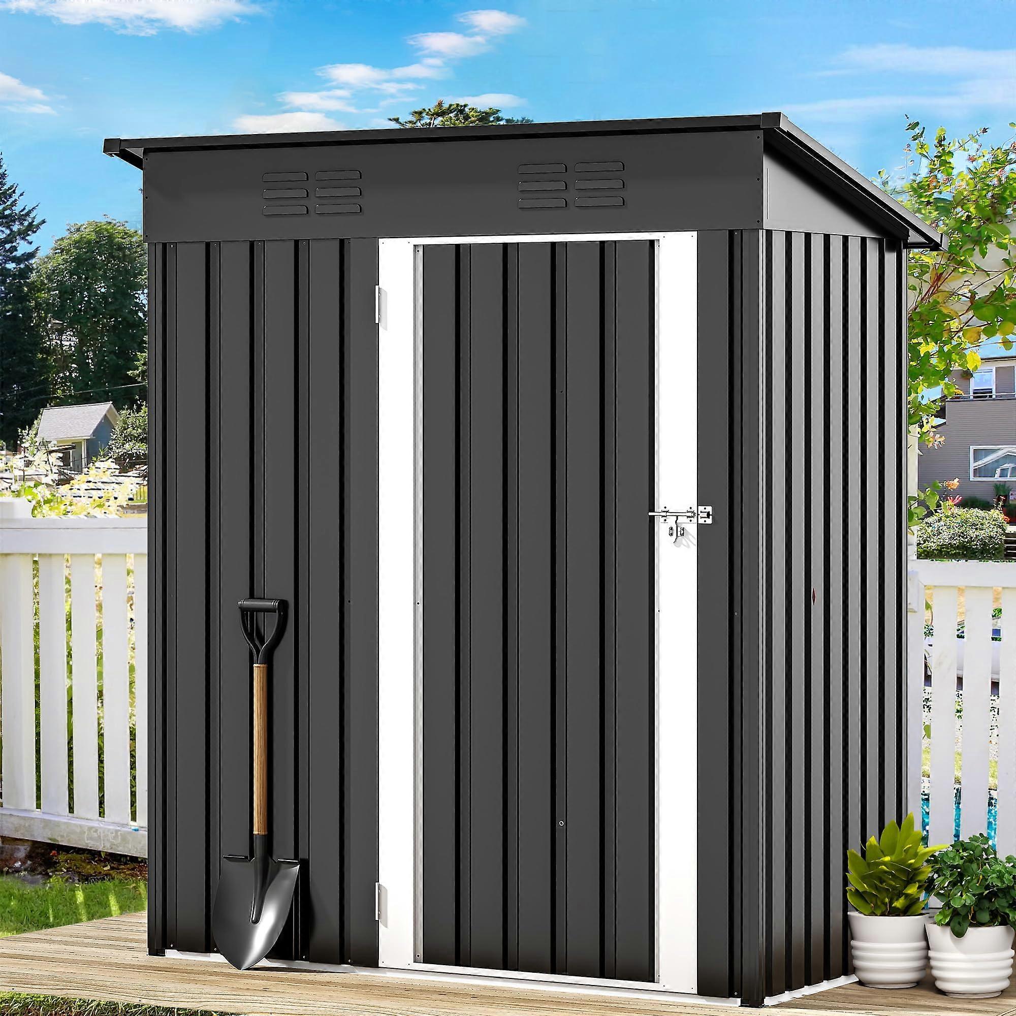 Outdoor Storage Shed 5x3 FT Heavy Duty Metal Garden Tool Storage with Lockable Door and Air Vents