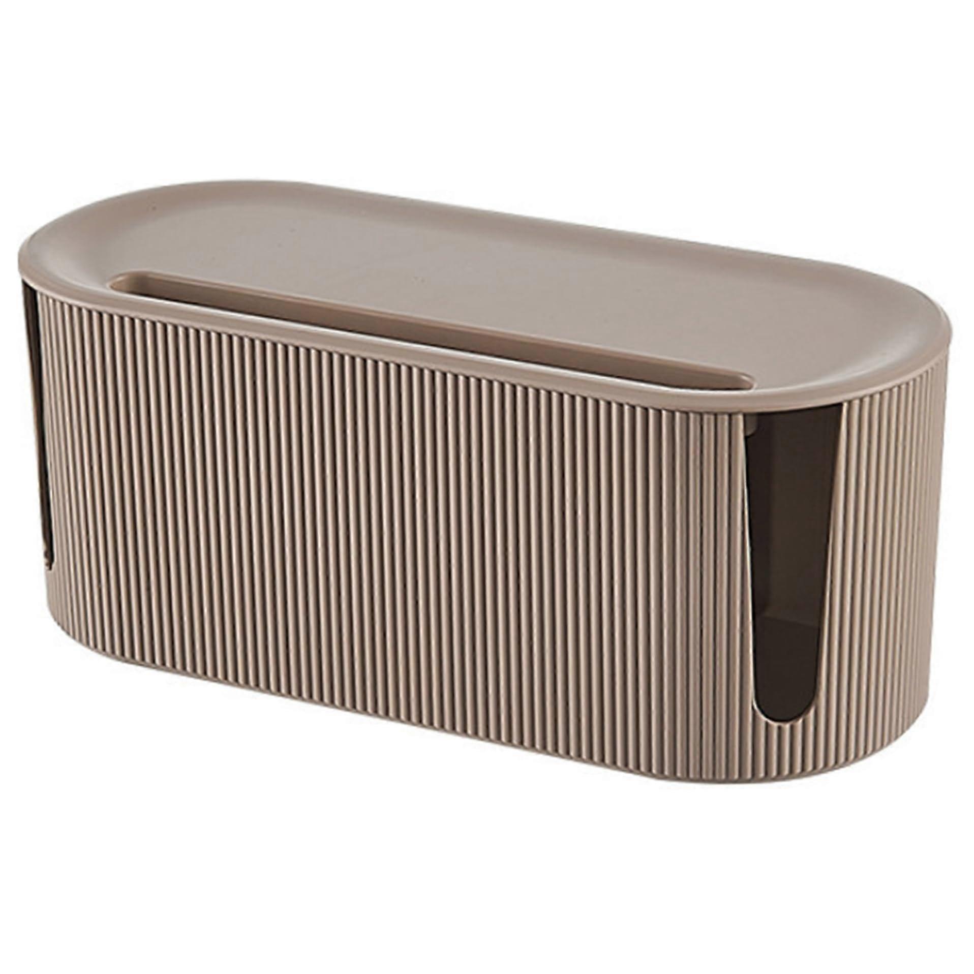 Cable Management Box Khaki Cord Organizer with Removable Lid for Home Office Dustproof Storage