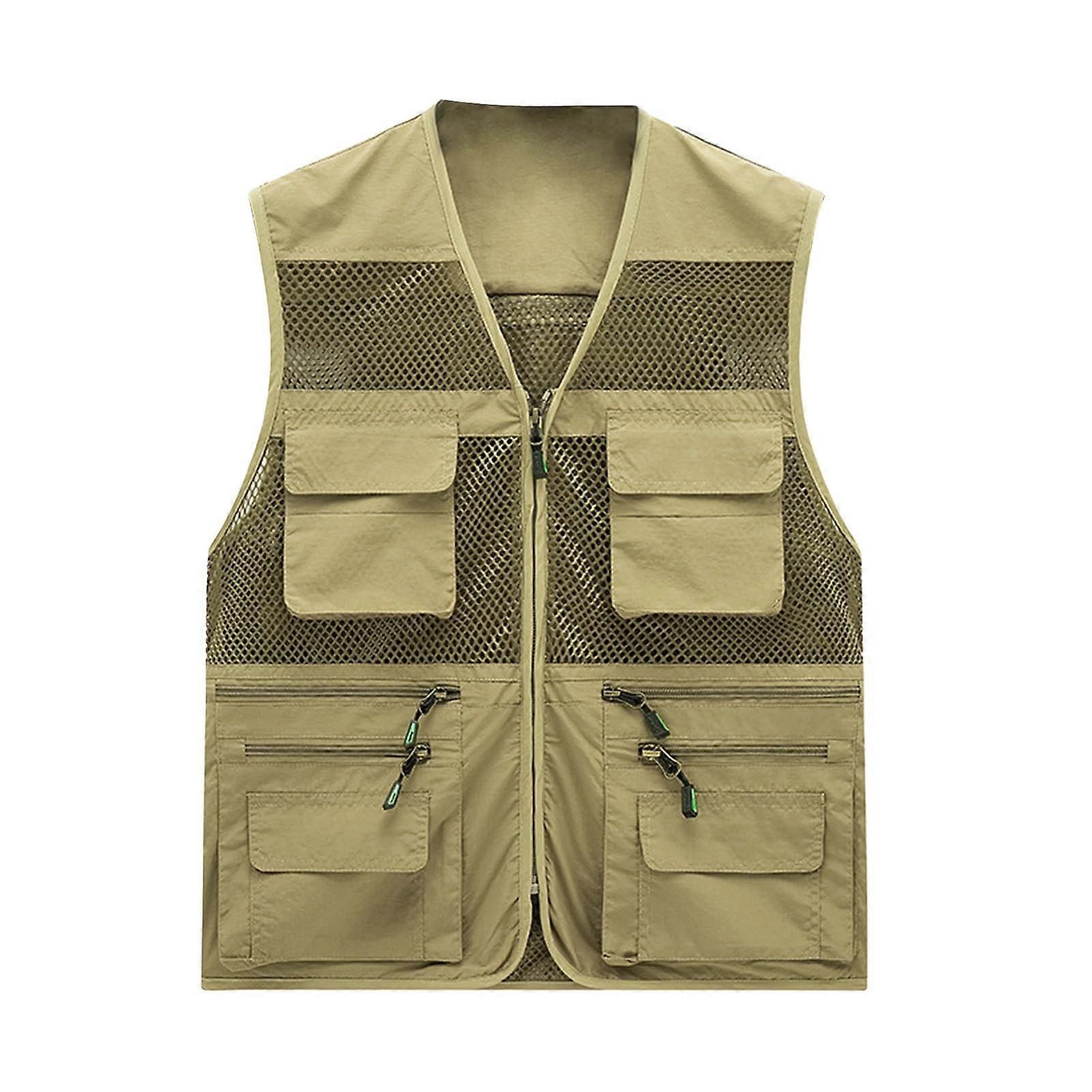 Men's Safari Fishing Vest Quick Dry Breathable with Multiple Pockets for Summer Outdoor XL Khaki