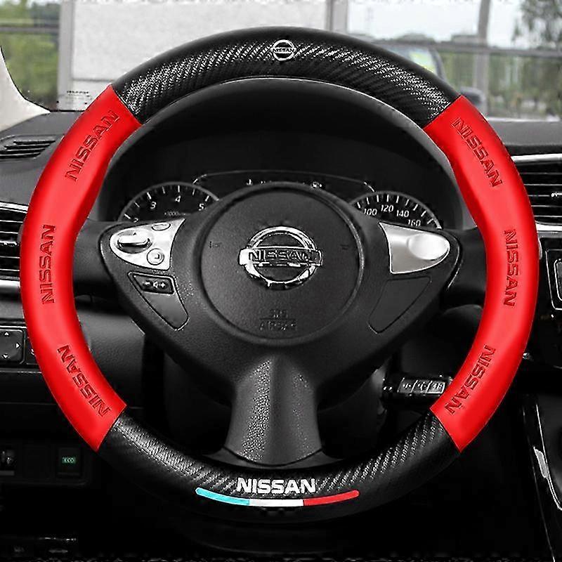 38cm Carbon Fiber Leather Car Steering Wheel Cover, All-Season Use, Compatible with Nissan ALTIMA, JUKE, LEAF, MICRA, NOTE, PULSAR Auto Accessories