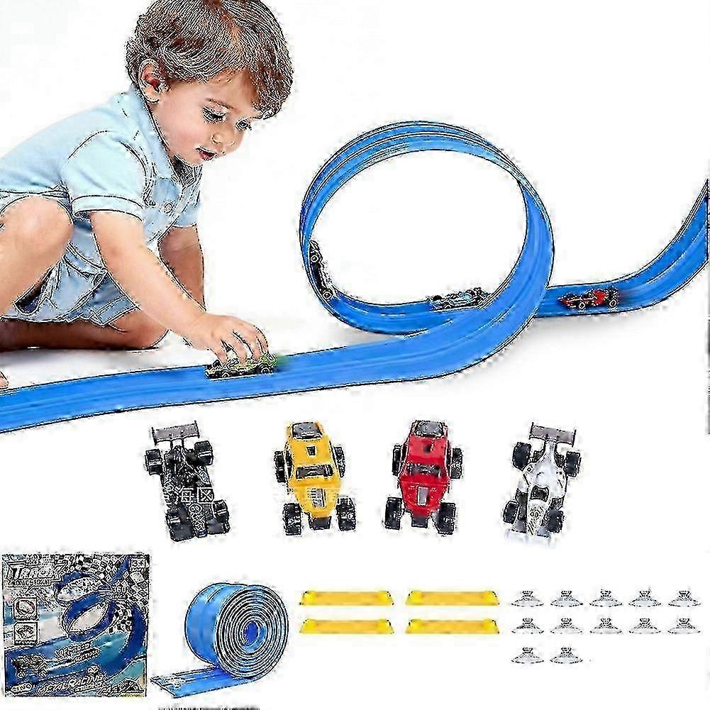 Flexible Kids Race Car Track Toy - Portable Rolls-Up Racetrack with Suction Cups, 4 Wheels, Compatible with 1:64 Scale Model Cars