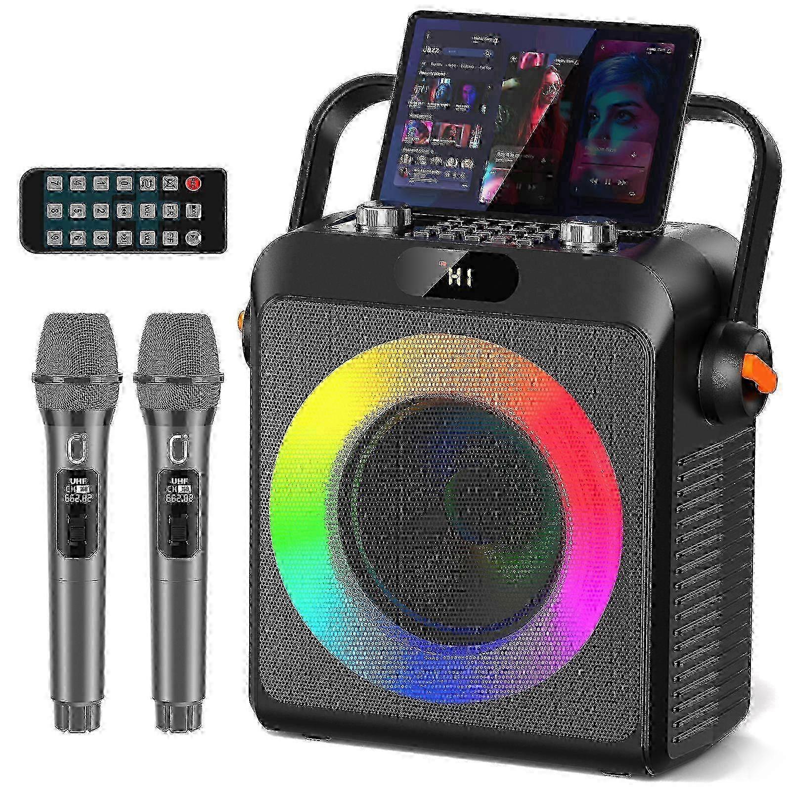 Portable JYX T19T Wireless Karaoke Machine, Includes 2 Microphones & DJ Lights, Perfect Singing System for Both Adults & Kids