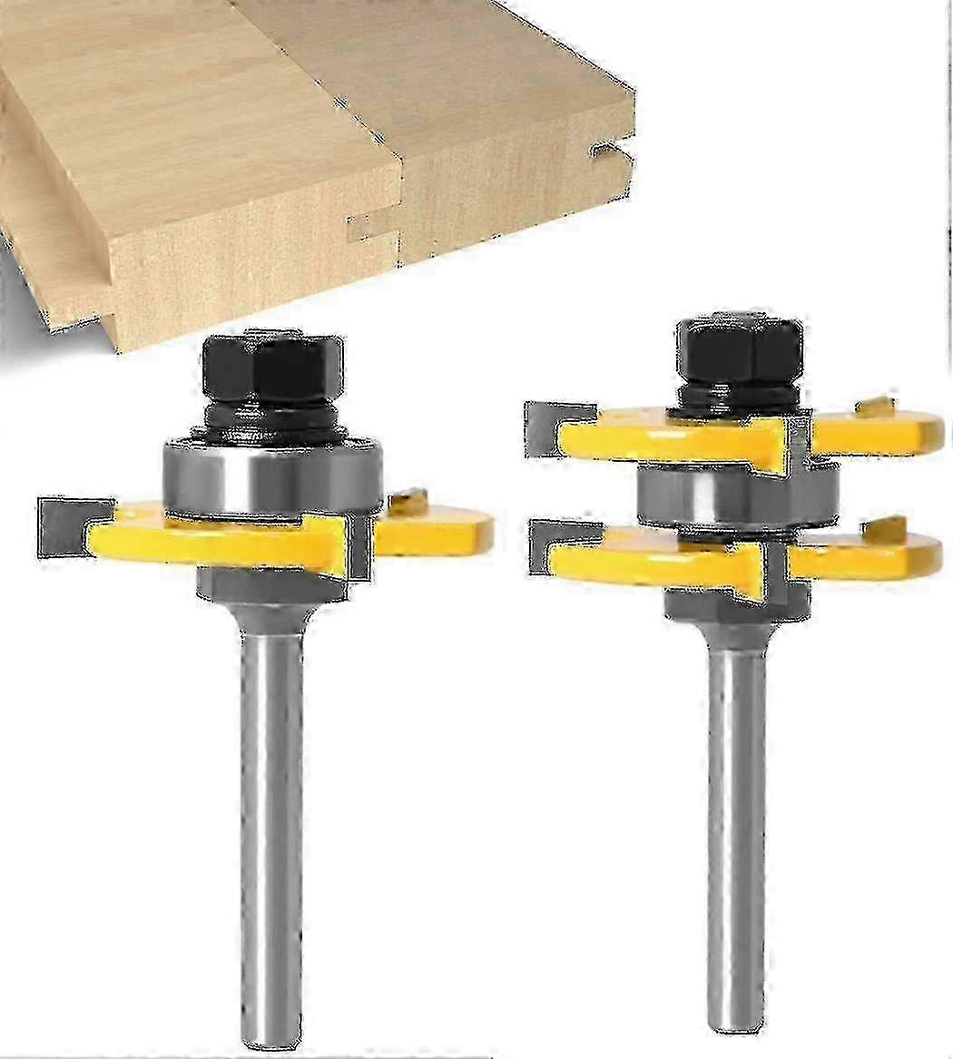 3 Teeth T Shape 6mm Shank Matched Tongue and Groove Cutter Set - Woodworking Tool for Precise Wood Cutting