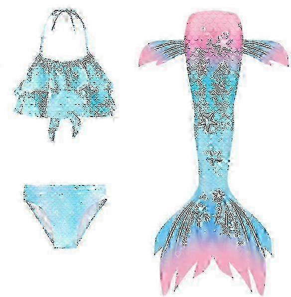 3-Piece Mermaid Tail Swimsuit Set for Girls Kids - Ariel Cosplay Costume & Fantasy Beachwear Bikini (Size 25-26)