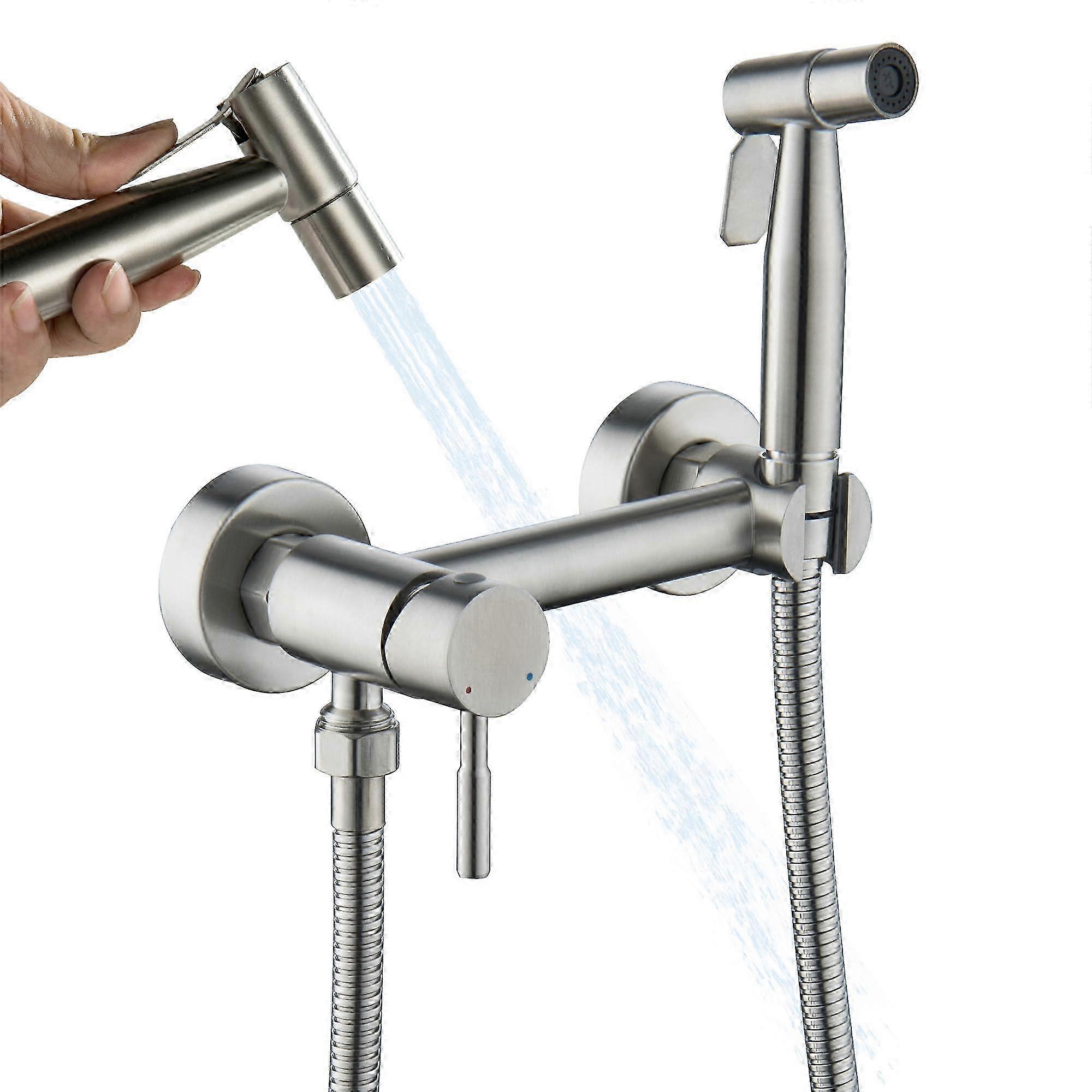 Wall Mounted Brushed Nickel Handheld Bidet Sprayer with Hot & Cold Water Control for Toilet Use
