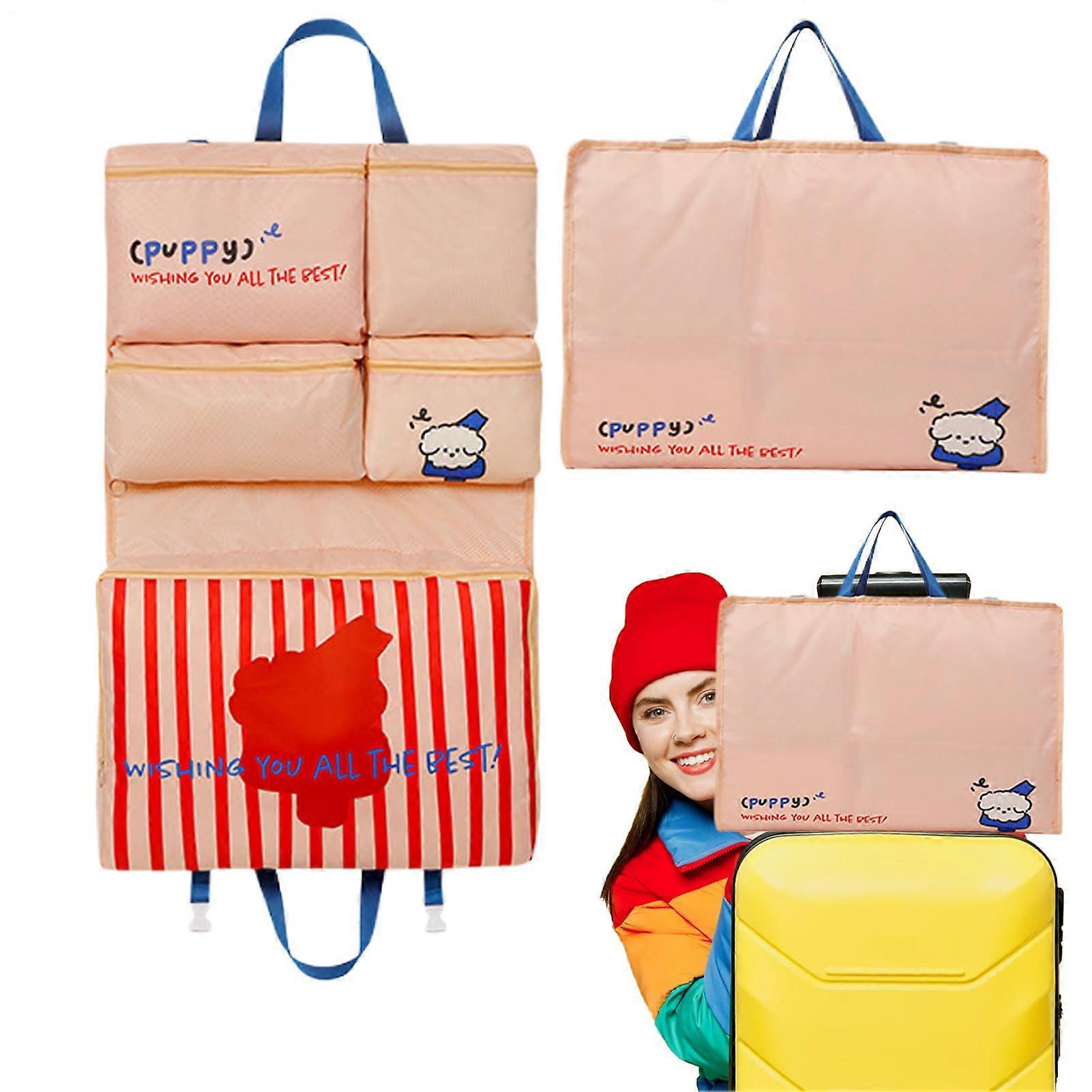 Travel Underwear Organizer with 6in1 Foldable Clothes Storage Bag for Bra Socks, Washable Fabric Red