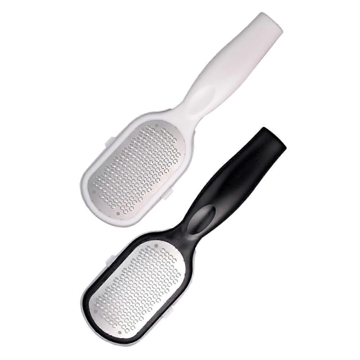 Package includes 2 foot files Product overview This two pack of foot files is made from ABS plastic and stainless steel for durable, reusable use. Each file measures 20.50 x 5.50 x 1.50 cm (8.06 x 2.16 x 0.59 inch) and is available in black and white. Designed for routine foot care, the files remove dry, dead skin and calluses to reveal smoother skin and improve comfort when walking or standing. Key benefits Effective callus and dead skin removal: stainless steel filing surface quickly reduces crusty or rough skin on heels and other areas. Durable and reusable: ABS handle and stainless steel surface are easy to clean for repeated use. Ergonomic and portable: compact size and comfortable grip provide control without straining the hands. Small enough to store in a drawer or toiletry bag. Suitable for many users: designed for women, men, and older adults who need simple, at home foot care. Features and specifications Package contents: 2 foot files Materials: ABS handle, stainless steel filing surface Size: 20.50 x 5.50 x 1.50 cm (8.06 x 2.16 x 0.59 inch) Colors: black and white Function: files away dry, dead skin and calluses; smooths rough areas on feet Maintenance: wipe or rinse clean after use; durable design for repeated use Practical use scenarios After a warm bath or shower: use the file on softened skin to quickly remove callused areas and reveal smoother skin. At home pedicure: include the file in a weekly foot care routine to maintain smooth heels and soles between salon visits. Before wearing open shoes: smooth rough patches to improve comfort and appearance before outings or travel. How to use Soften feet in warm water for a few minutes. Gently file the callused or rough areas using light, even strokes. Rinse feet and apply a moisturizer as part of your routine. Clean the file after use and store in a dry place. This compact, easy to use foot file set offers a simple solution for managing dry skin and calluses at home.