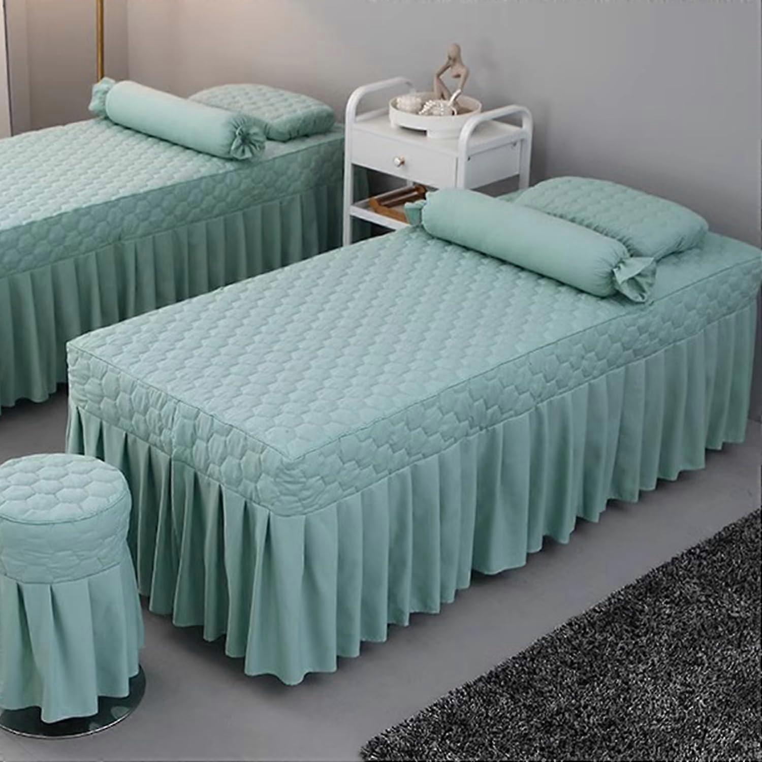 Green Massage Table Skirt with Face Hole Spa Bed Cover SkinFriendly Fitted Sheet for Salon