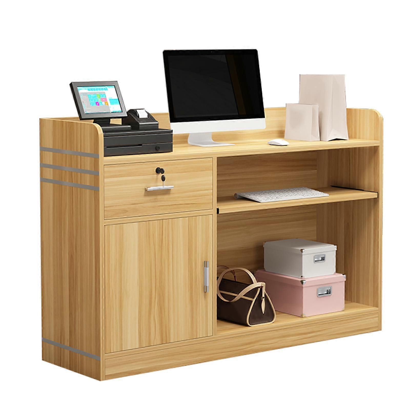 Modern Reception Desk with Storage Shelves and Lockable Drawer, Light Walnut Cashier Counter for Office and Salon