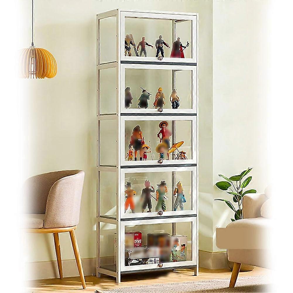 Clear Acrylic Display Case with Bamboo Frame, 60cm 5Tier Flip Door Cabinet for Collectibles, White