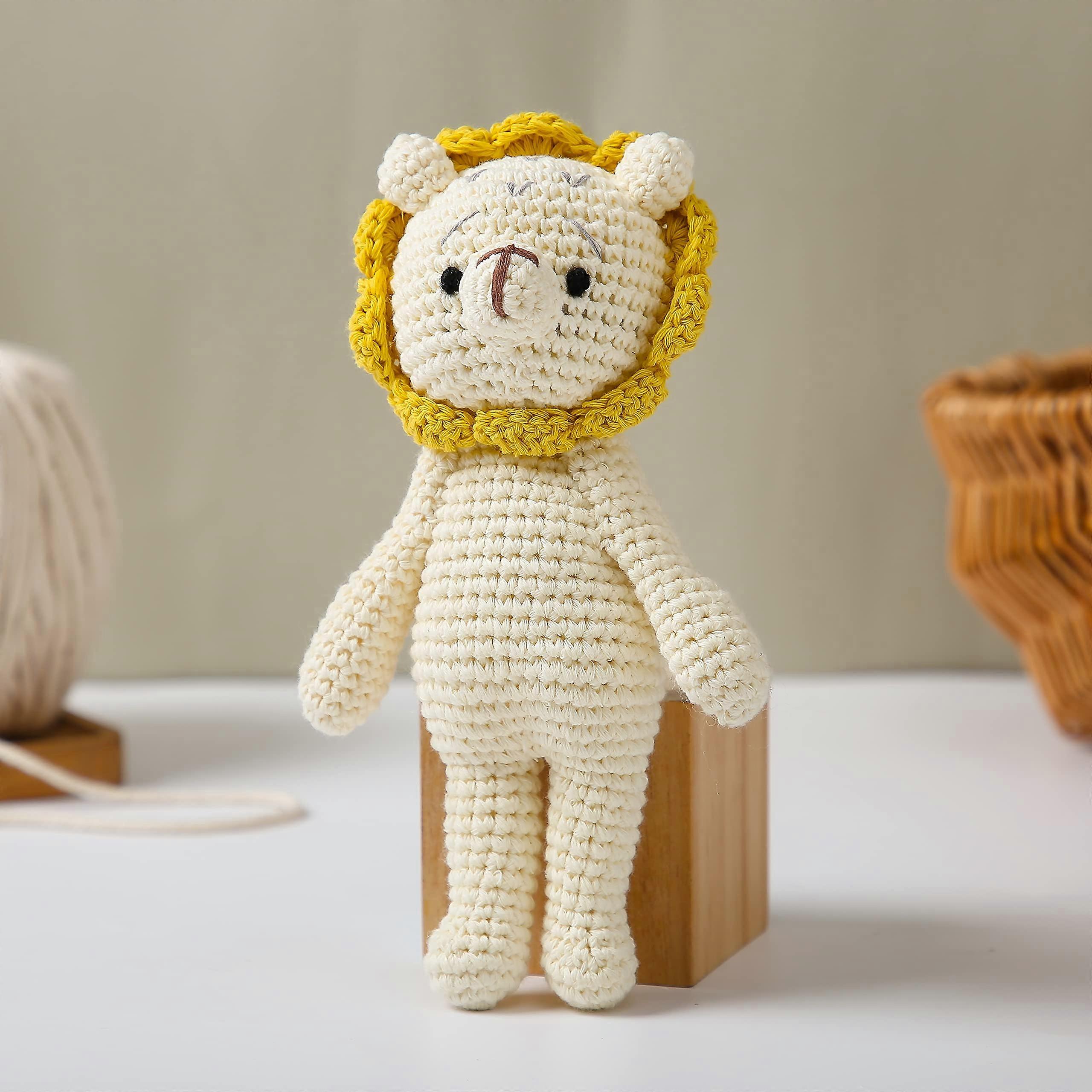 Handmade Crochet Lion Baby Rattle Soft Cotton Stuffed Animal Toy for Newborns Baby Shower Gift