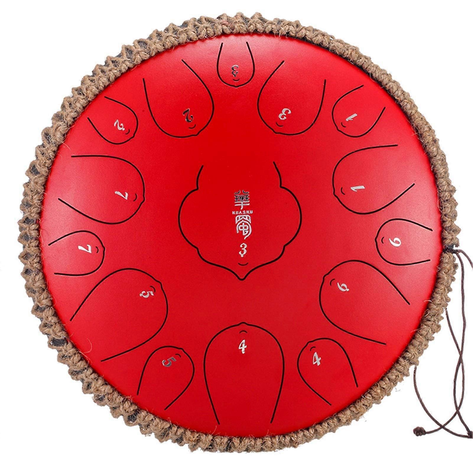 12 Inch 15 Note Steel Tongue Drum Red Professional Handpan Drum for Yoga Meditation with Mallets and Bag