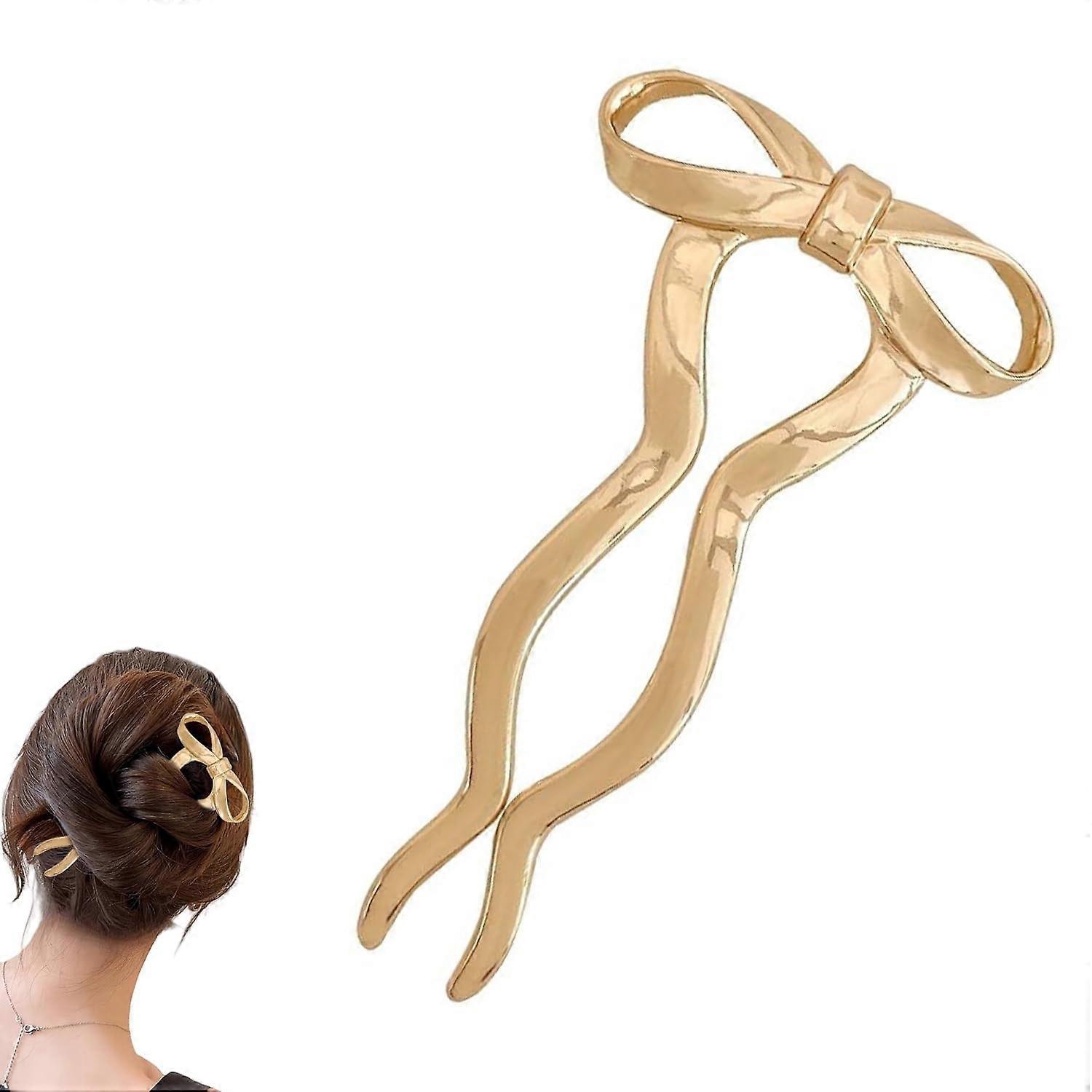 Gold Bow Hair Fork for Thick Hair with Vintage French UShaped Design and Secure NonSlip Hold