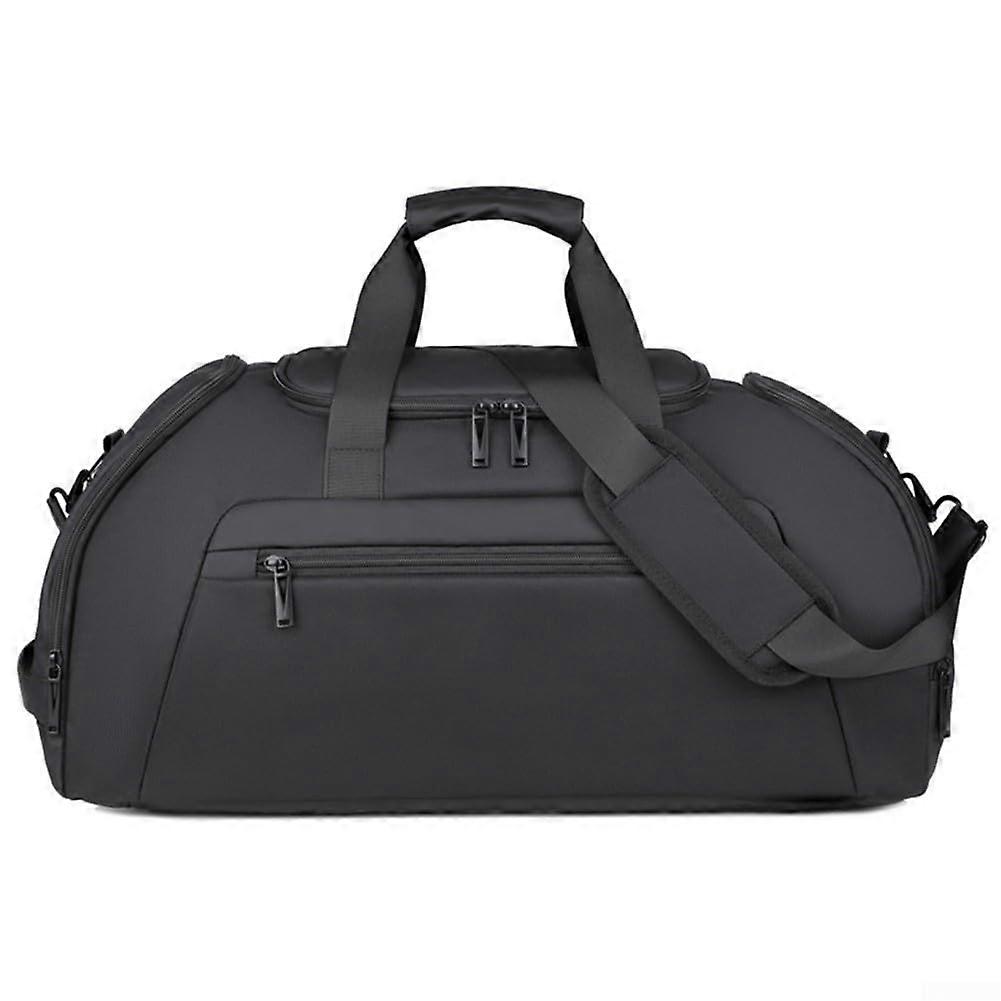 Black Gym Duffle Bag with Shoe Compartment, Water Repellent Fabric for Travel and Workout