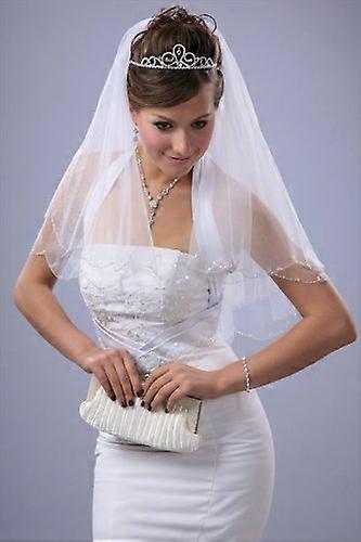Ivory Two Tier Elbow Length Bridal Veil with Hand Beaded Scallop Edge and Silver Seed Beads