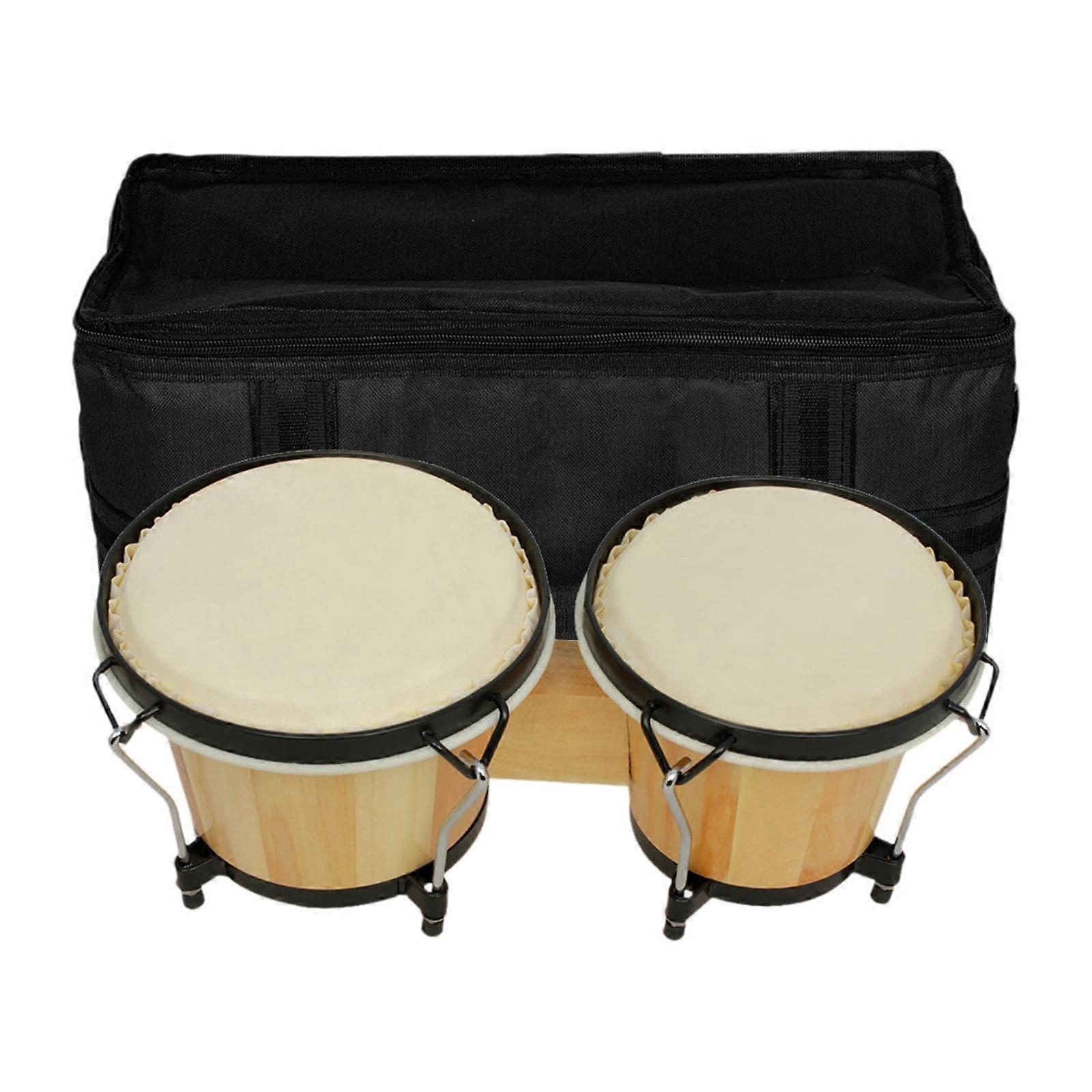 Wooden Bongo Drums Set with Bag, Dual Sizes, Durable Wood for Warm Tones, Professional and Student