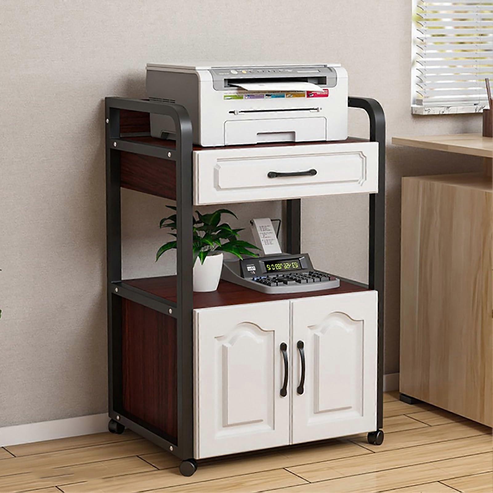 Printer Stand with Storage and Drawer, Wood Printer Table with File Cabinet for Home Office Brown
