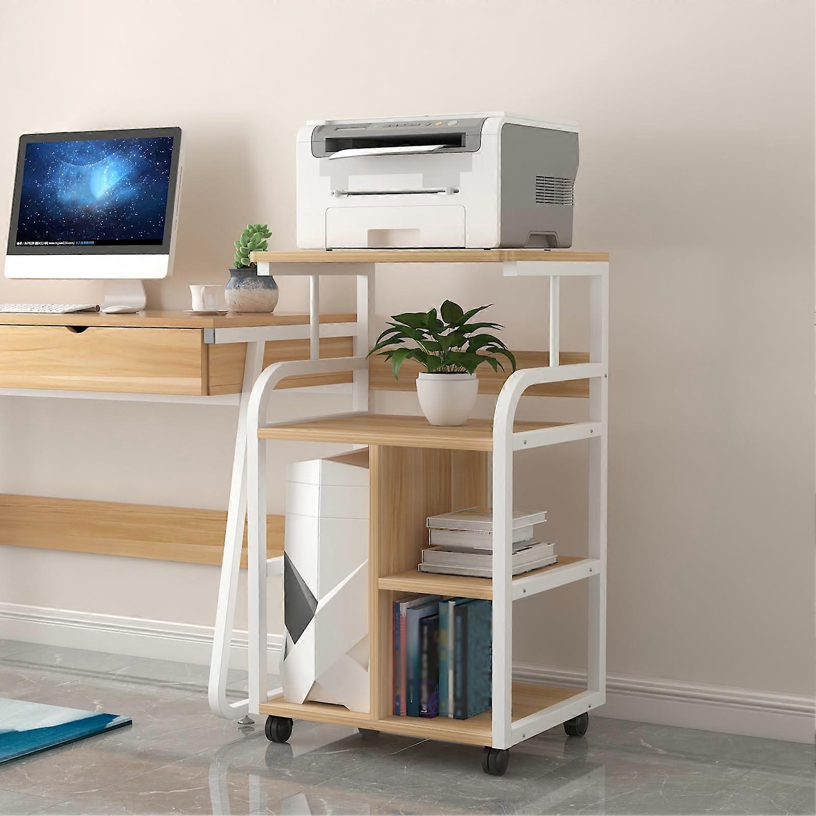 3 Tier Wood Printer Stand with Wheels, SpaceSaving Storage Cart for Home Office, Natural Color