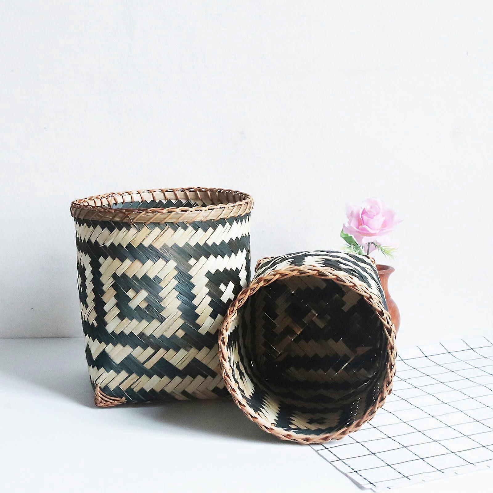 Black Bamboo Trash Can Waste Basket, Woven Multiuse Storage for Bathroom Bedroom Office