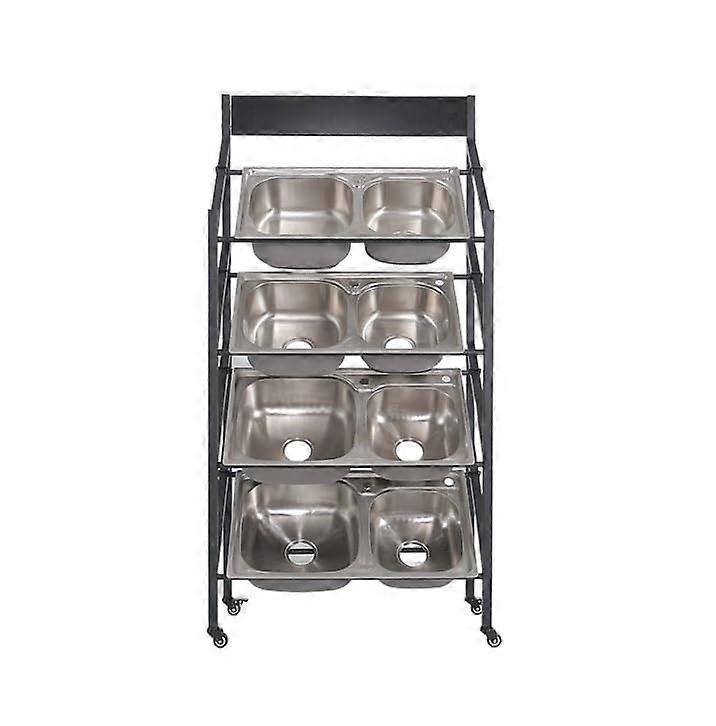 Commercial Kitchen Sink Rack, 90cm Stainless Steel Double Slot Display Stand with Wheels for Catering