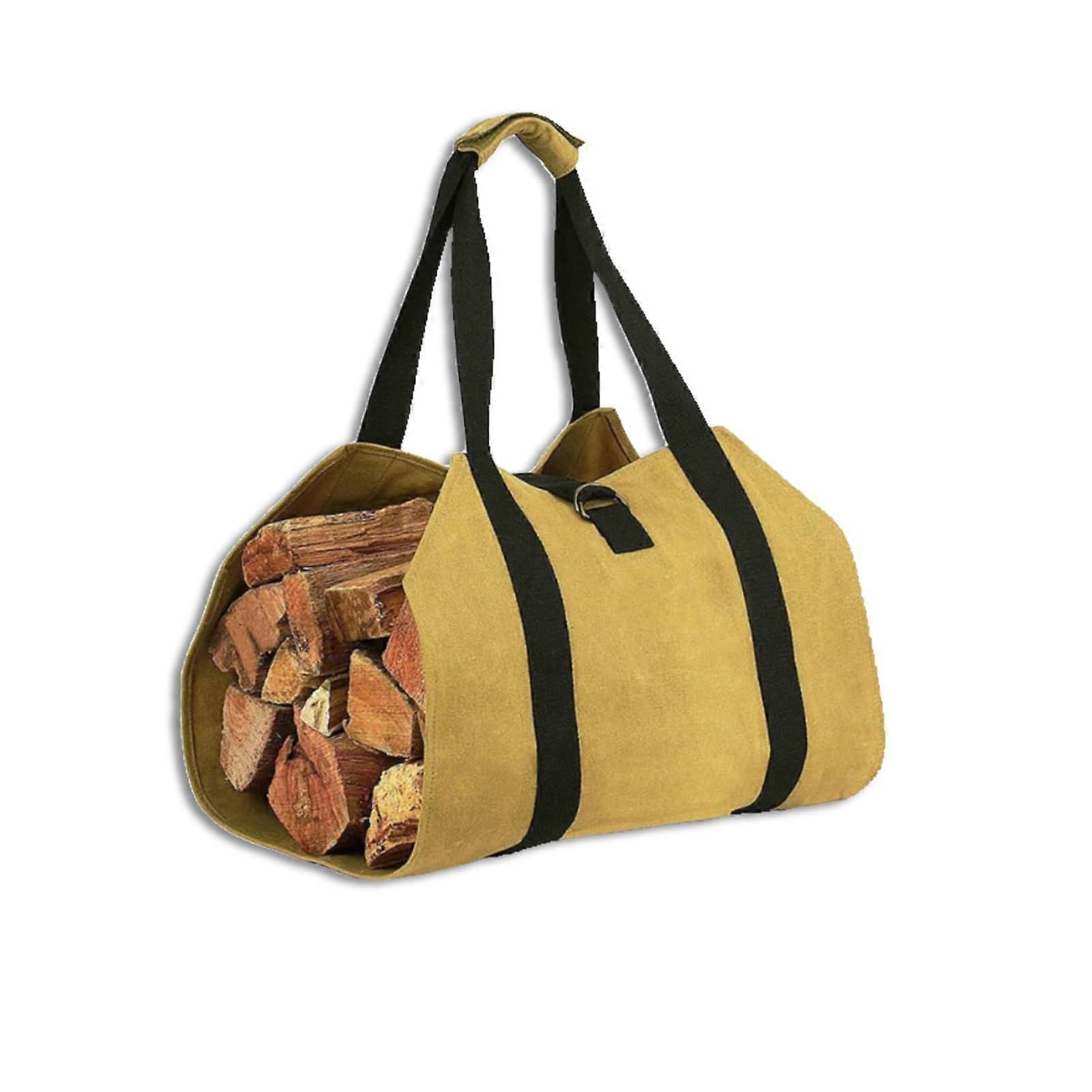 Firewood Carrier Bag Large Capacity 600D Oxford with Adjustable Strap and Dual Handles Khaki