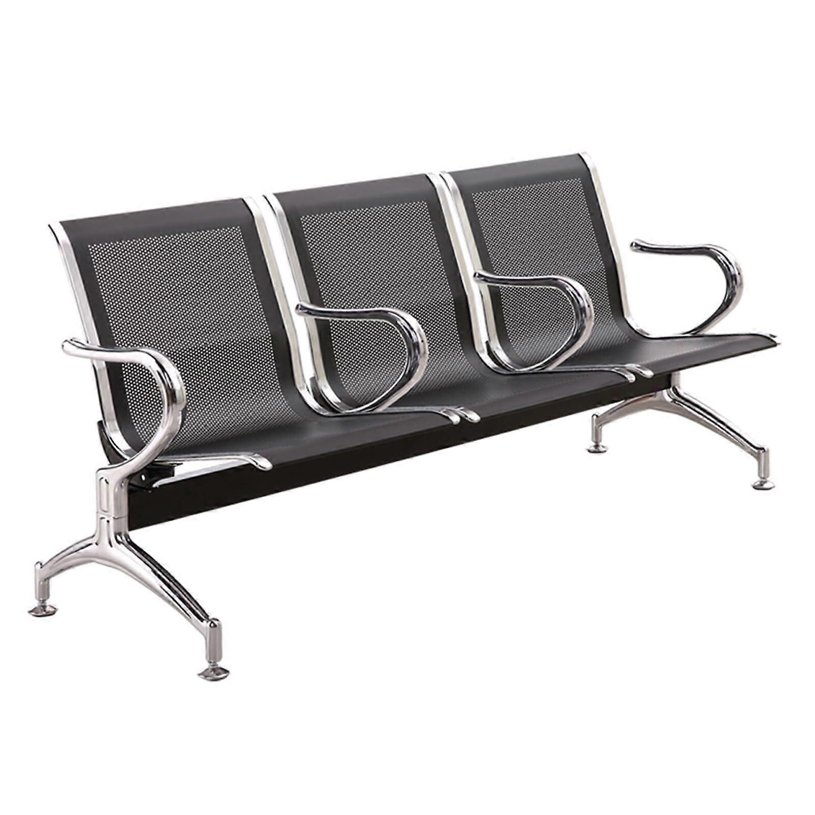 3Seat Reception Bench with Armrests, Ergonomic Back Steel Waiting Room Chair, Black Design