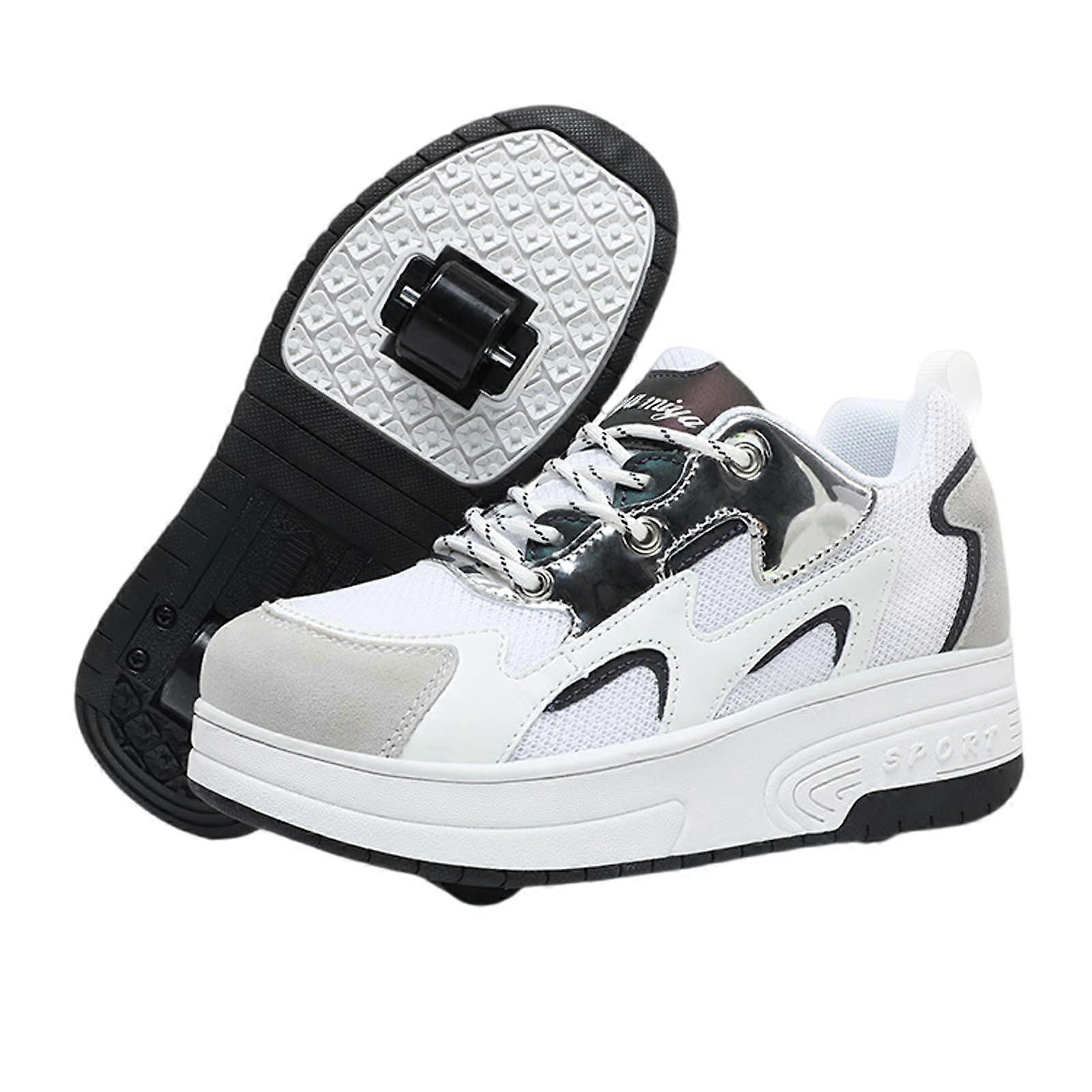 Kids Roller Skate Shoes Dual Wheel Design Breathable Mesh Sneakers with Wheels White 30 EU