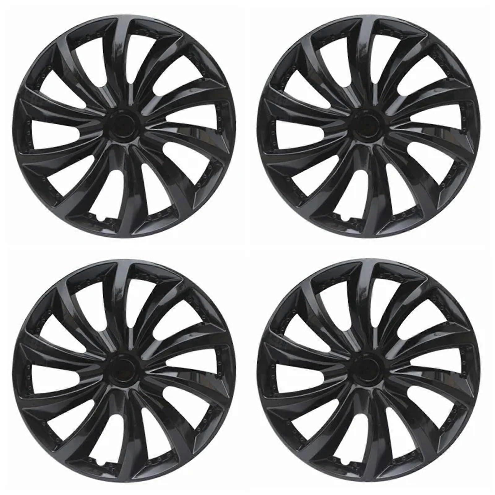 4PCS Universal Hubcaps R14 Bright Black Wheel Covers for Car SUV Truck Replacement